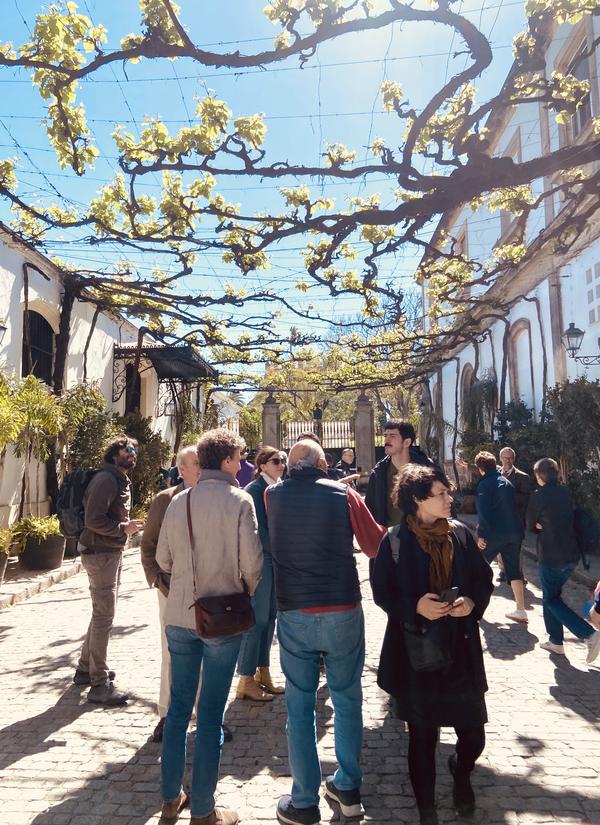 La mañana del 25 de junio nos condujo por calles frescas hasta los patios emparrados de las Bodegas González Byass, donde la sombra vegetal lleva más de setenta años tejiendo microclimas silenciosos, pero muy trabajadores. Calle Ciegos, calle Unión y aledañas no es solo una muy fotografiada posta